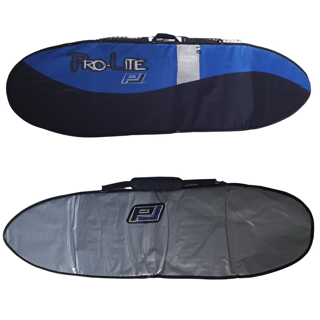 Capa para prancha de surf leve e resistente, impermeável, não vedada, com tecido refletivo de um lado da capa do outro lado poliéster 420. As costuras são reforçadas e nas partes mais exigidas da costura, ela é fechada com travete eletrônico, permitindo uma grande quantidade de linha num mesmo ponto de costura.
